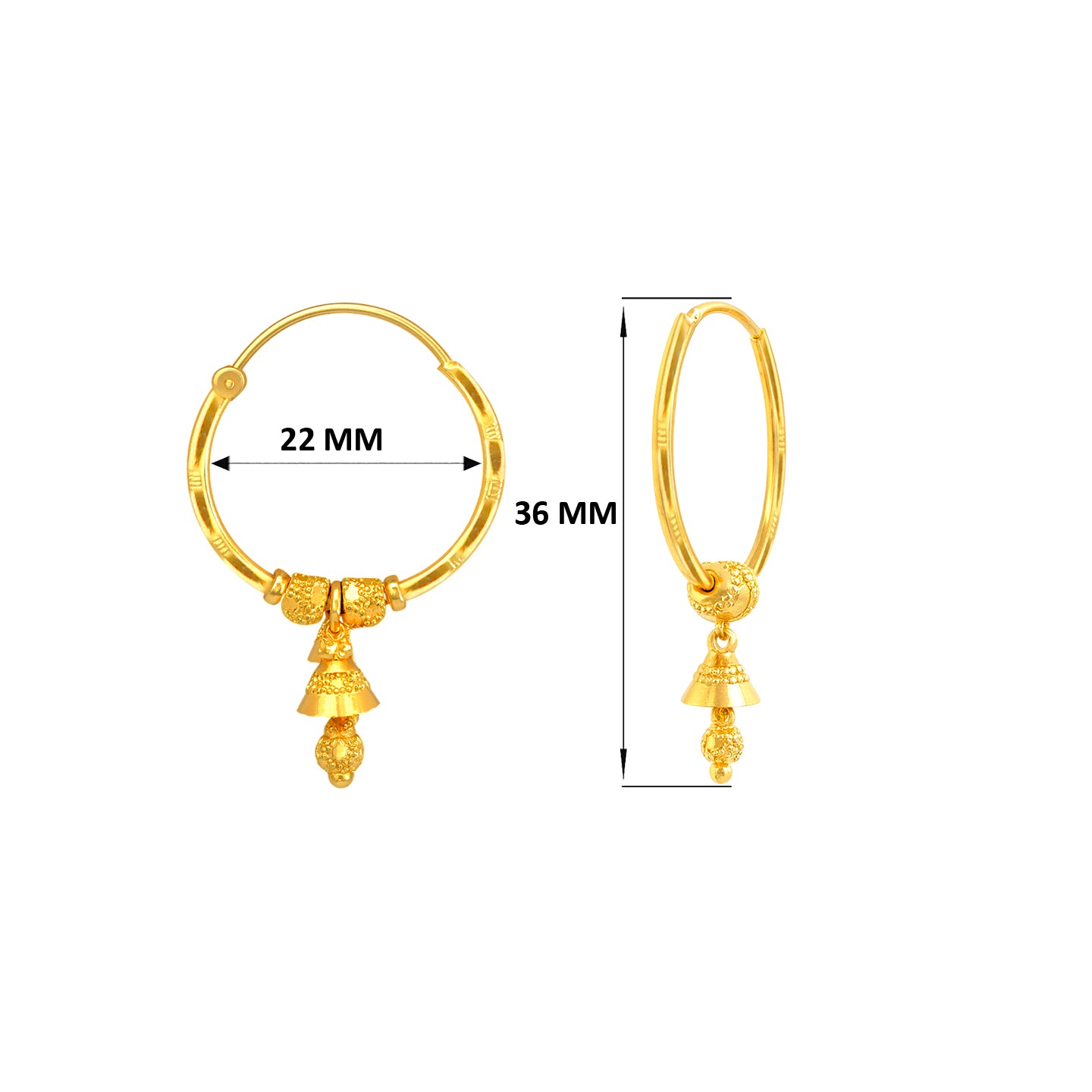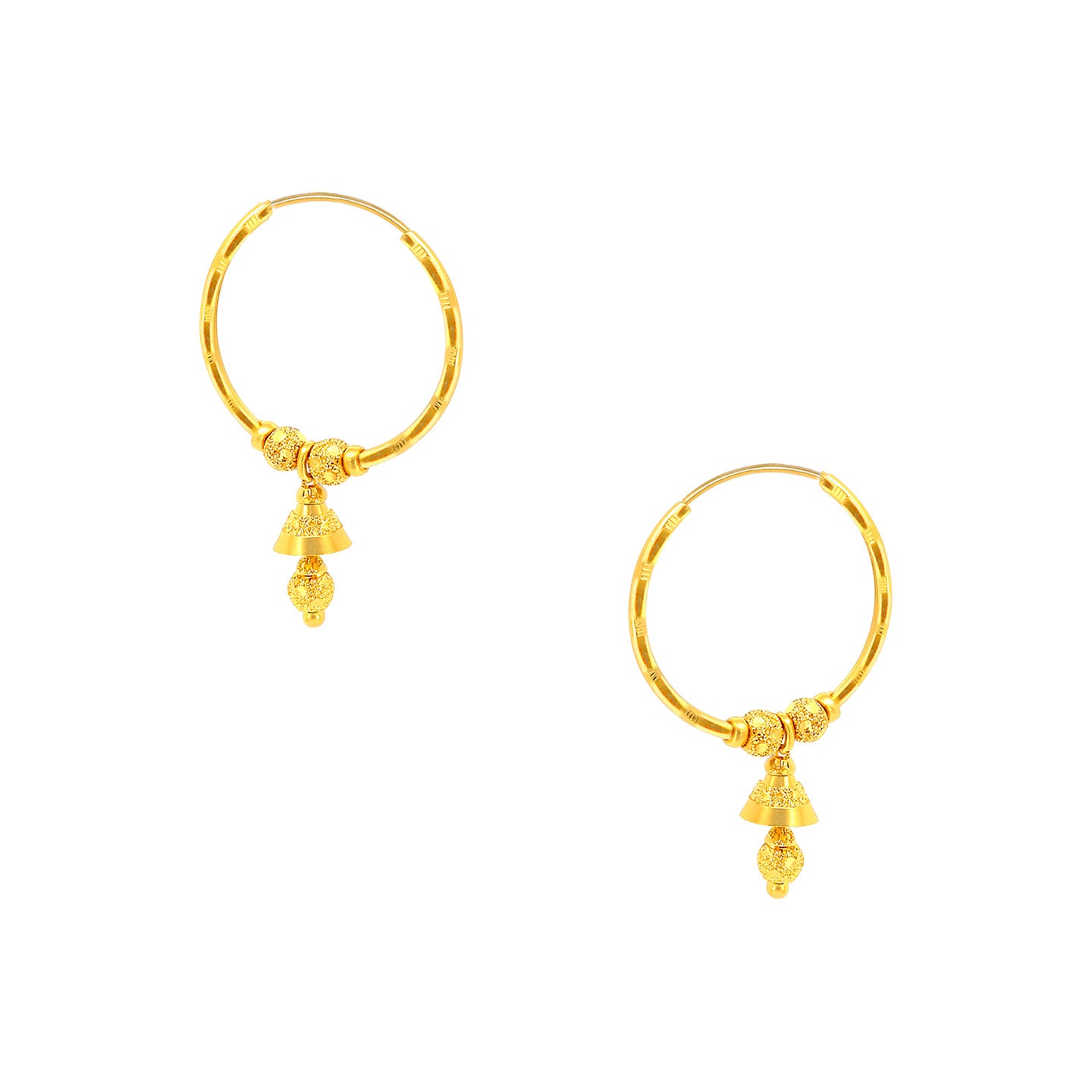 22k Yellow Gold Medium Beaded Drops Earrings measuring 22mm width x 36mm length. Total gold weight is approximately 5.33g.