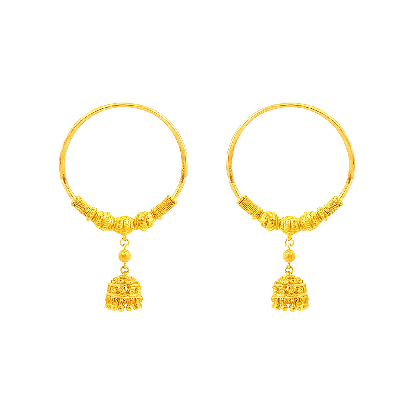 22k Yellow Gold Medium Fancy Beaded Earrings measuring 23mm width x 44mm length. Total gold weight is approximately 9.52g.