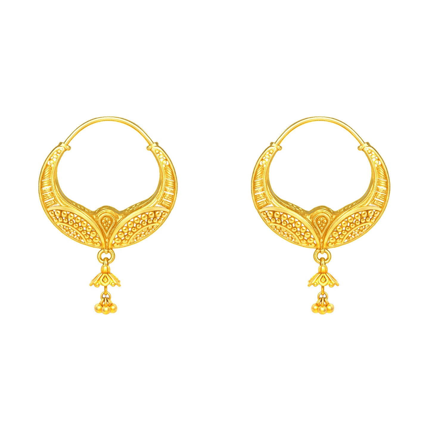 22k Yellow Gold Medium Fancy and Stylish Earrings measuring 17mm width x 35mm length. Total gold weight is approximately 8.21g.