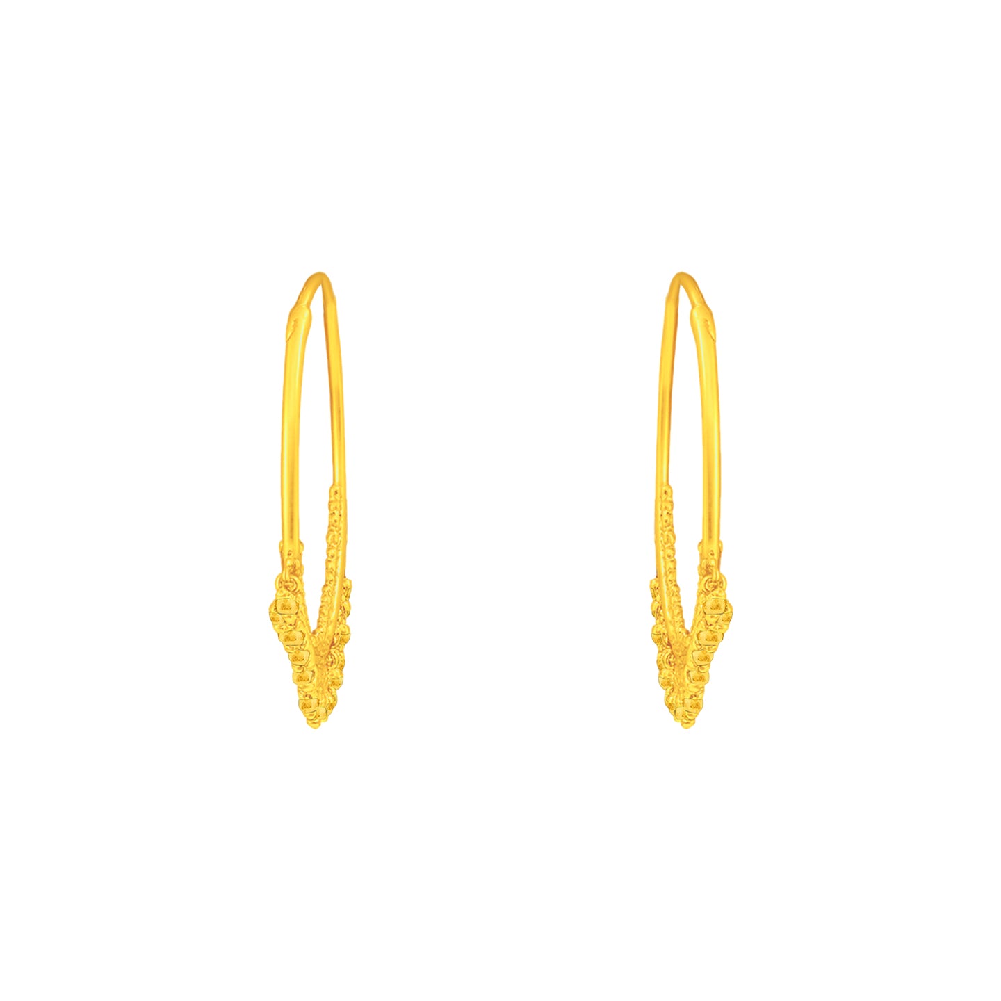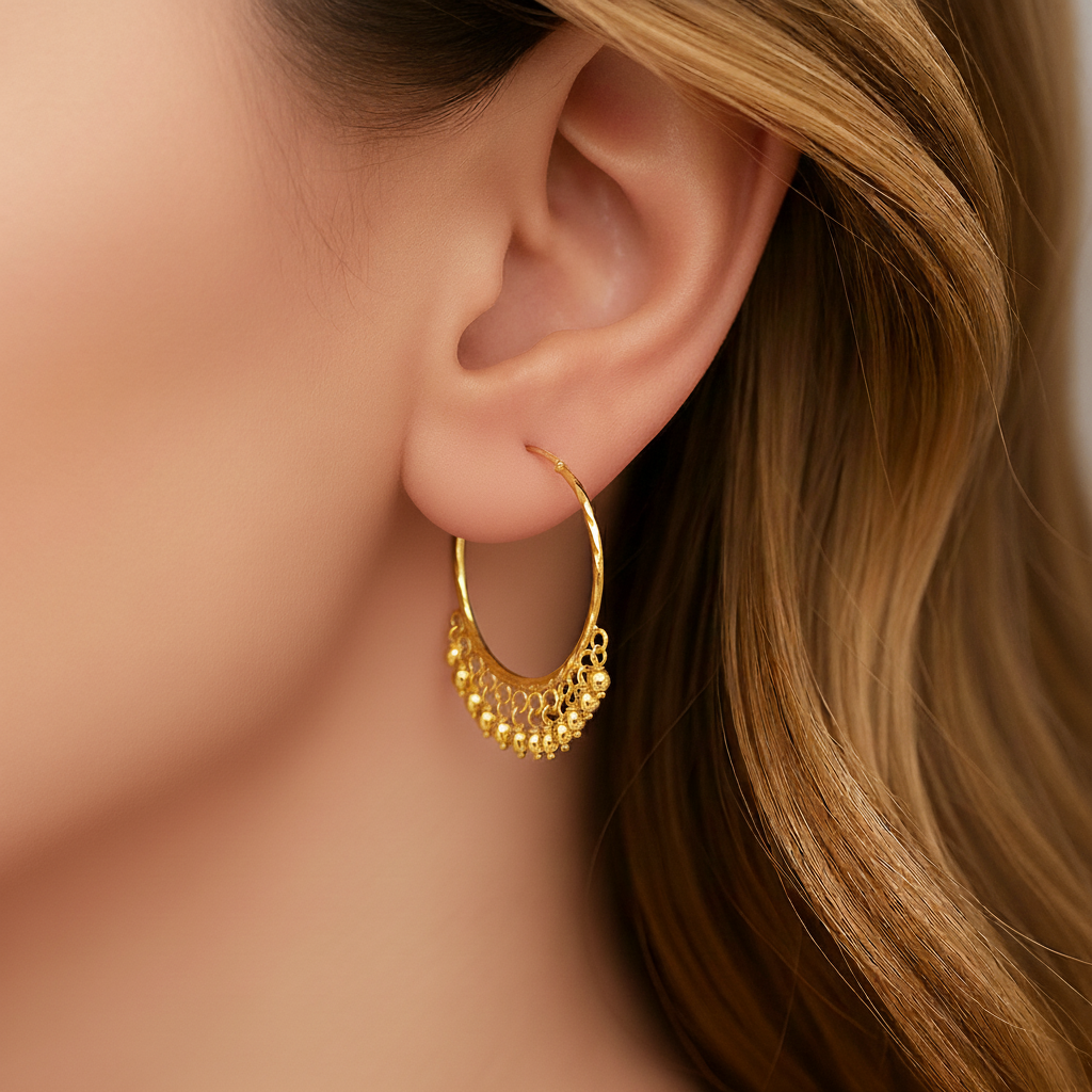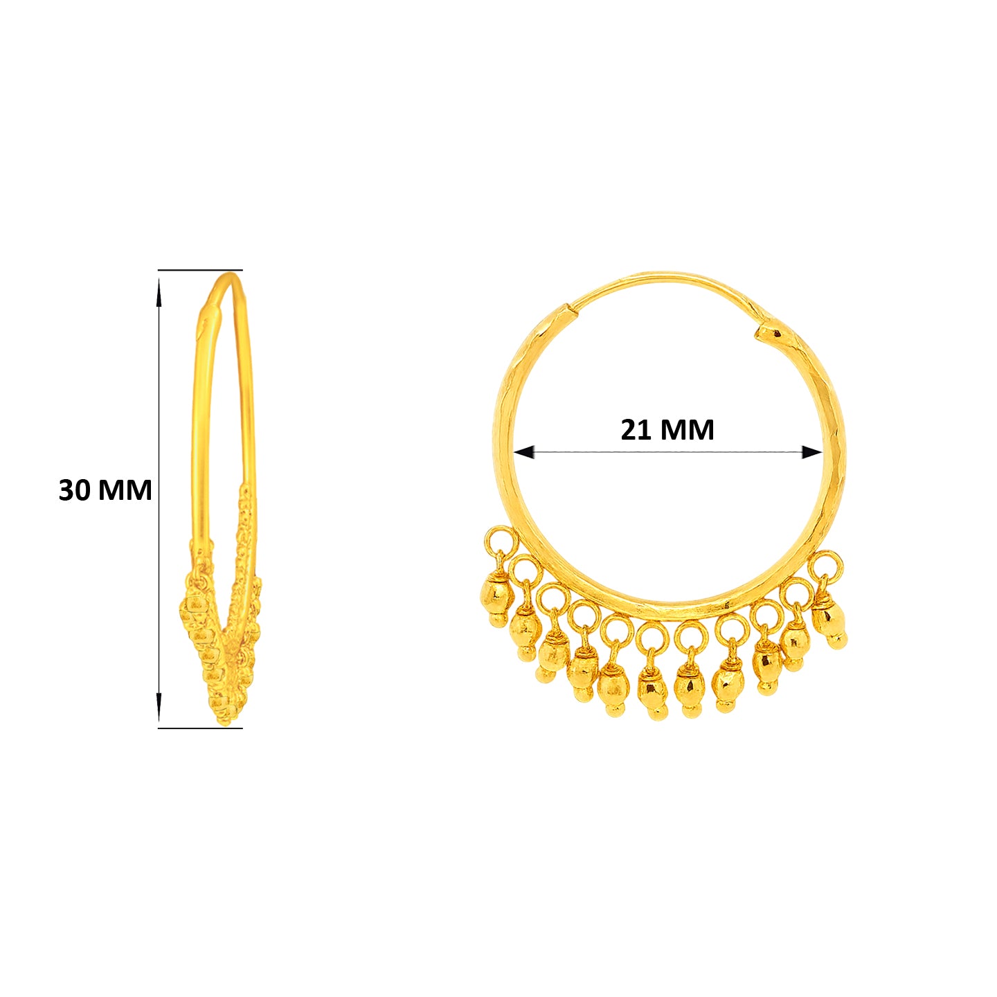 22k Yellow Gold Medium Patterned with Fringes Earrings measuring 21mm width x 30mm length. Total gold weight is approximately 5g.