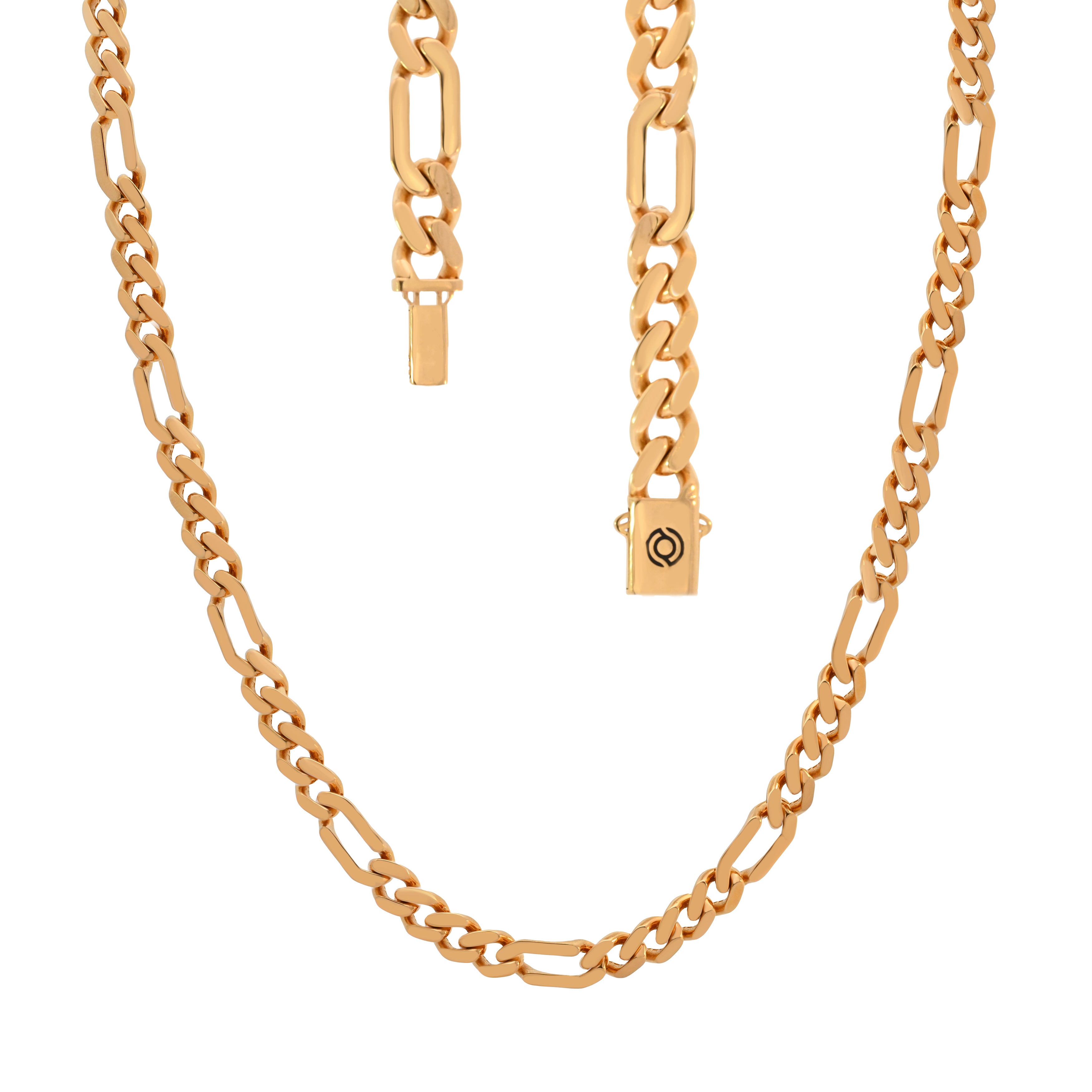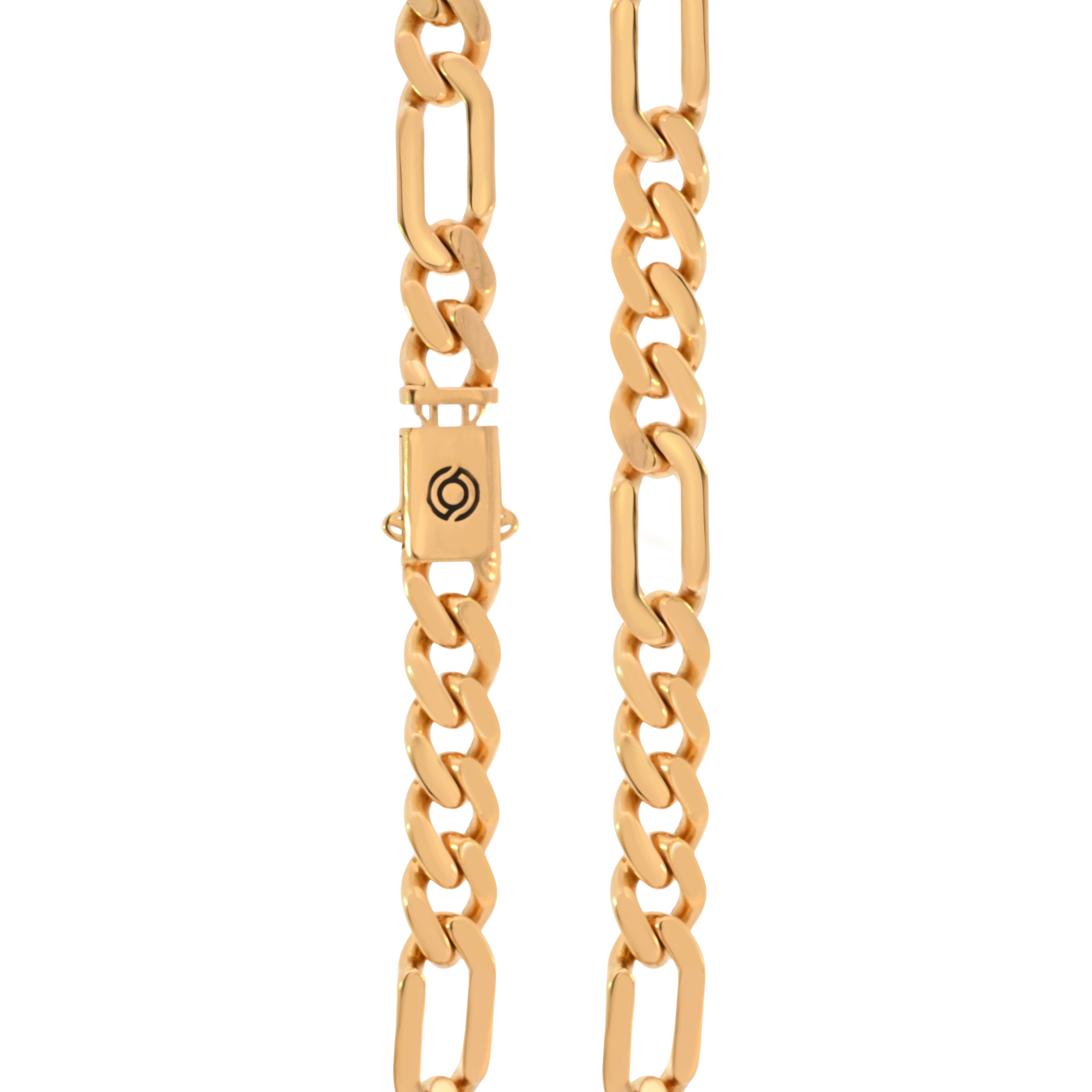 22k Yellow Gold Mens Figaro Cuban Chain measuring 8mm width x 20 inch length. Total gold weight is approximately 51g.