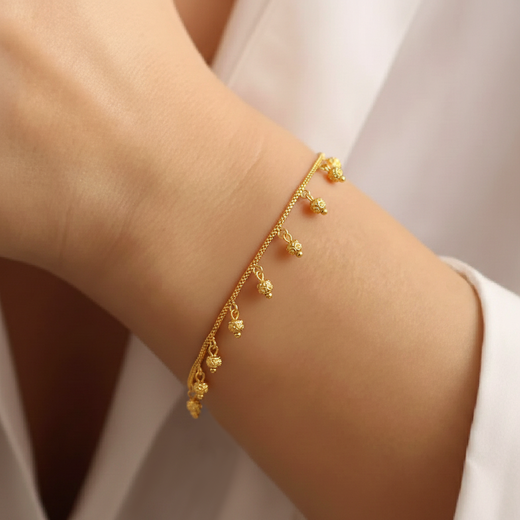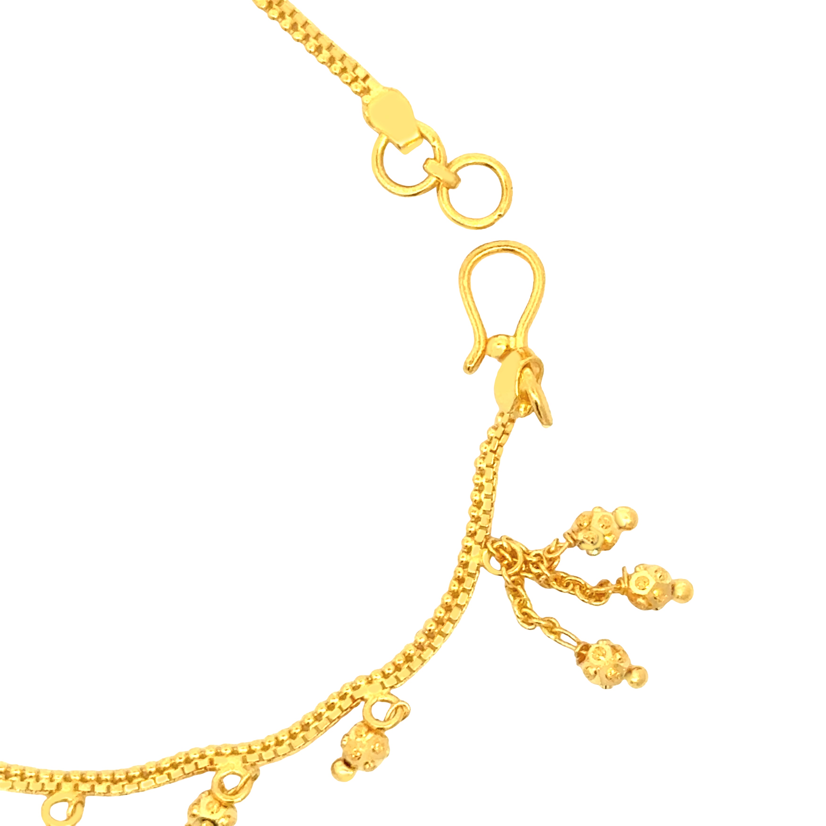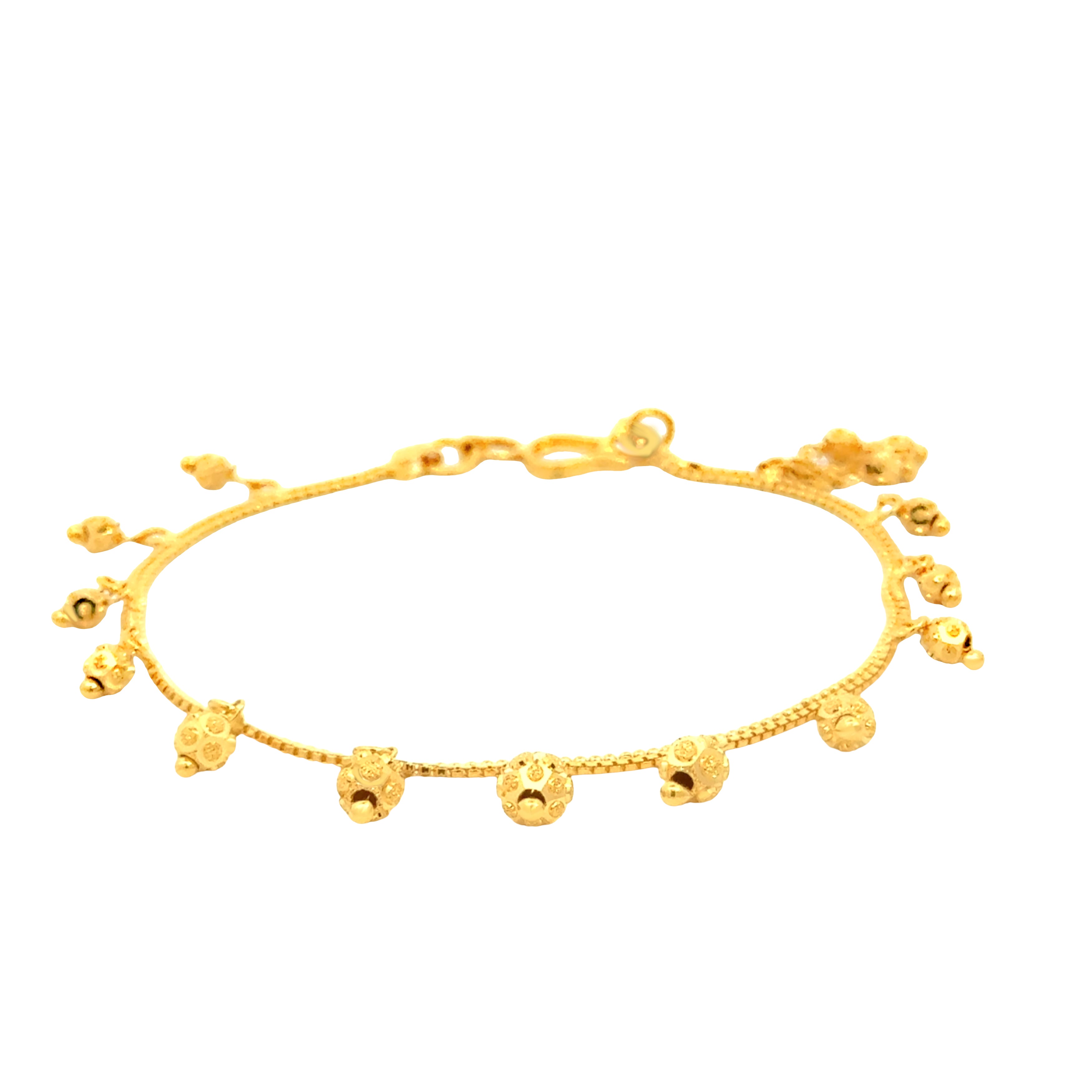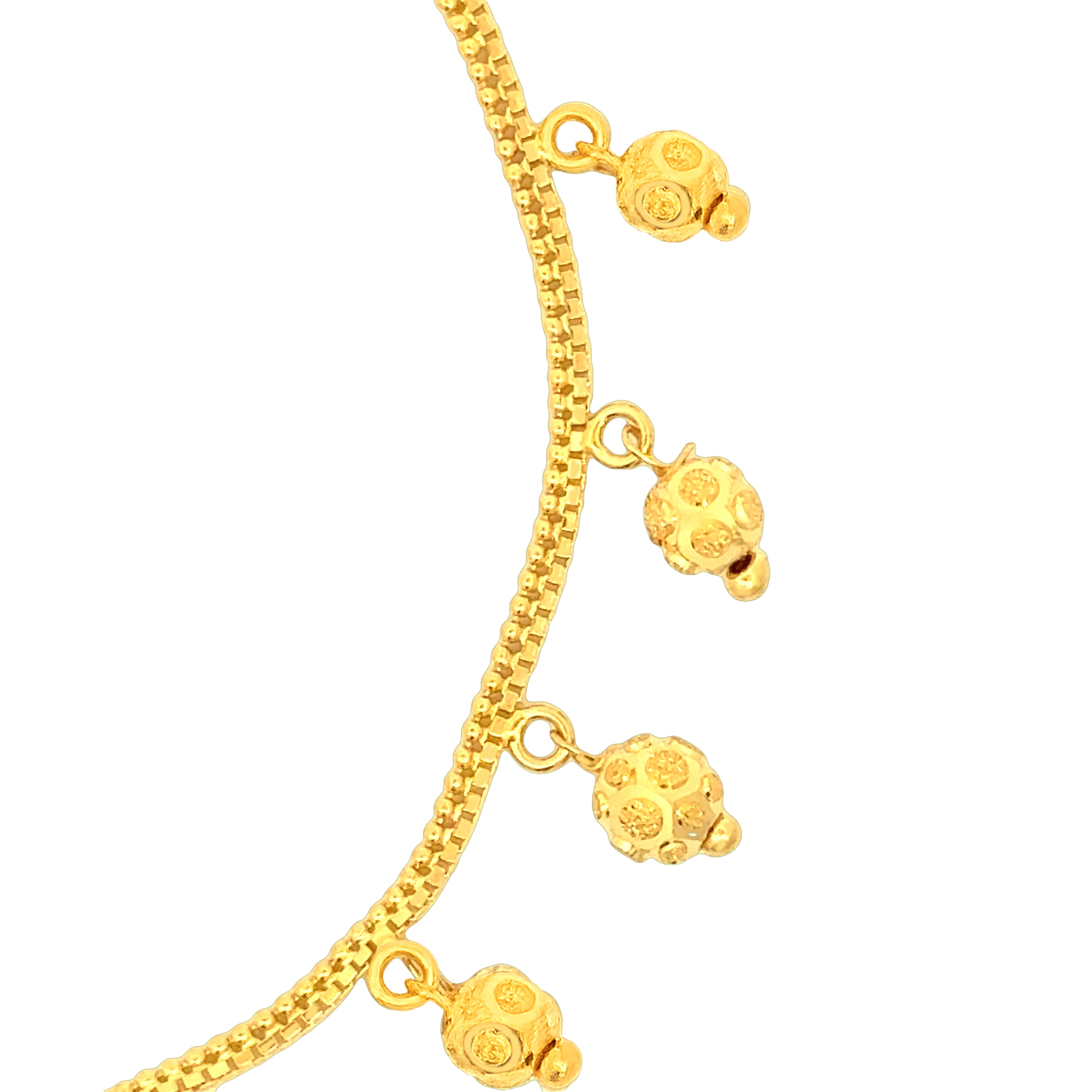 22k Yellow Gold Mesmerizing Charm Ball-Bead Bracelet measuring 2mm thickness x 7 inch length.