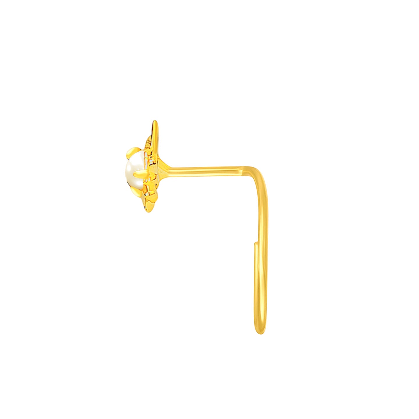22K Yellow Gold Pearl Large Geometric Nose Pin with Wire measuring 6mm width. Total gold weight is approximately 0.24g. For health and safety reasons, nose pins and nose rings CANNOT BE exchanged or returned once purchased.
