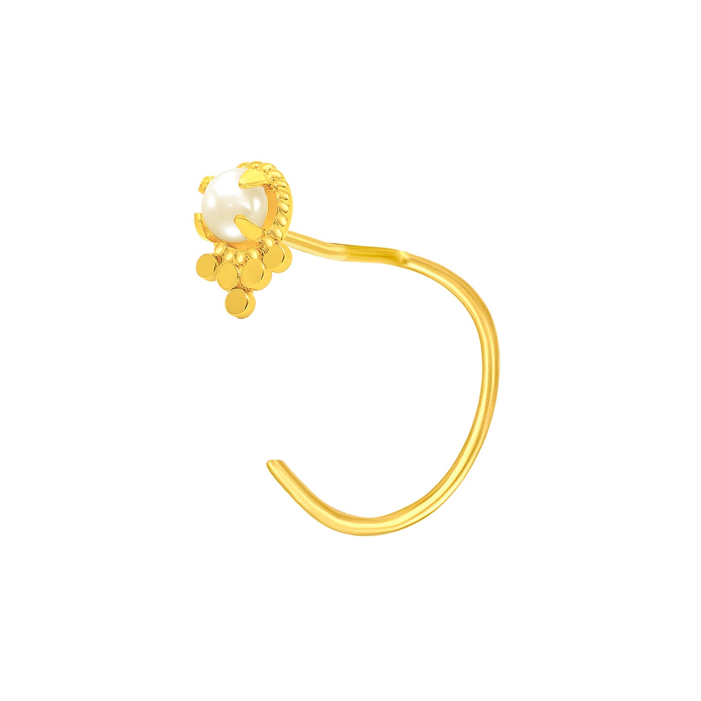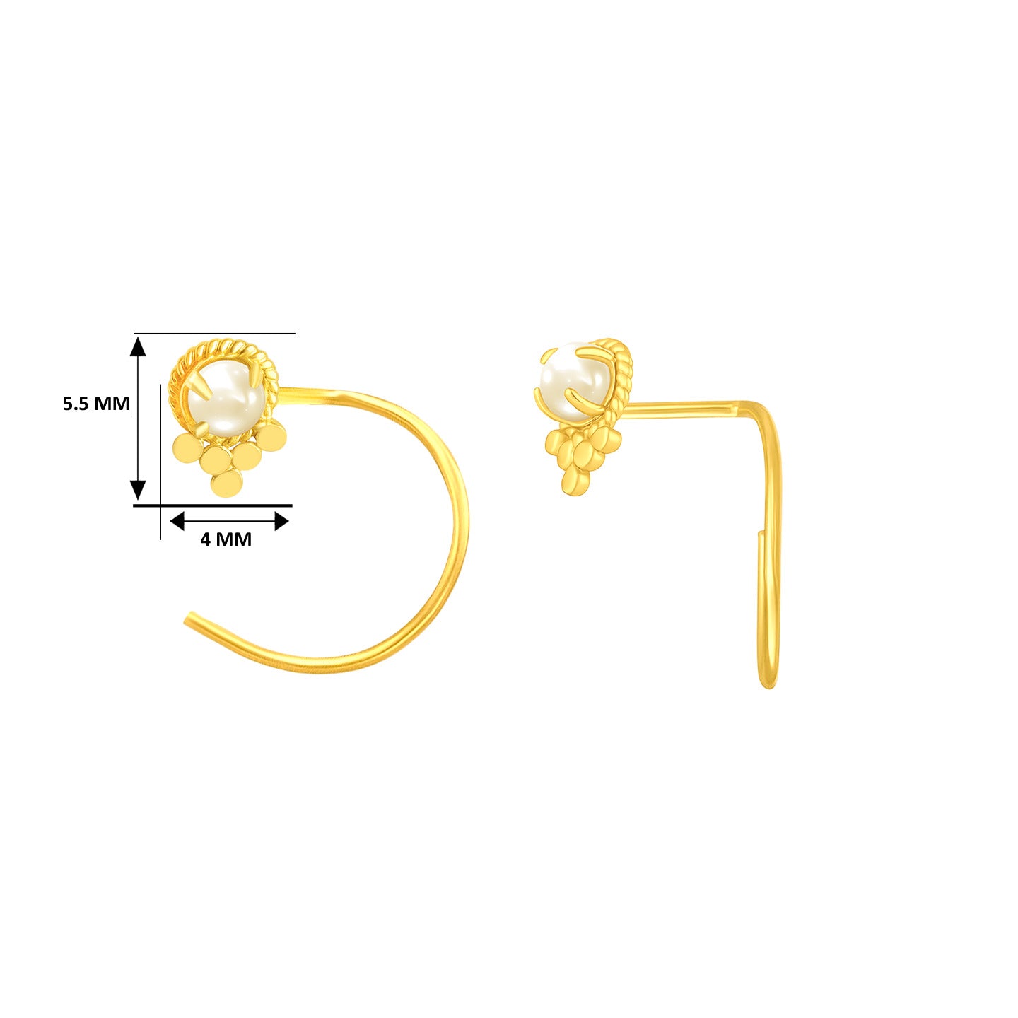 22K Yellow Gold Pearl Medium Peacock Nose Pin with Wire measuring 6mm width. Total gold weight is approximately 0.24g. For health and safety reasons, nose pins and nose rings CANNOT BE exchanged or returned once purchased.