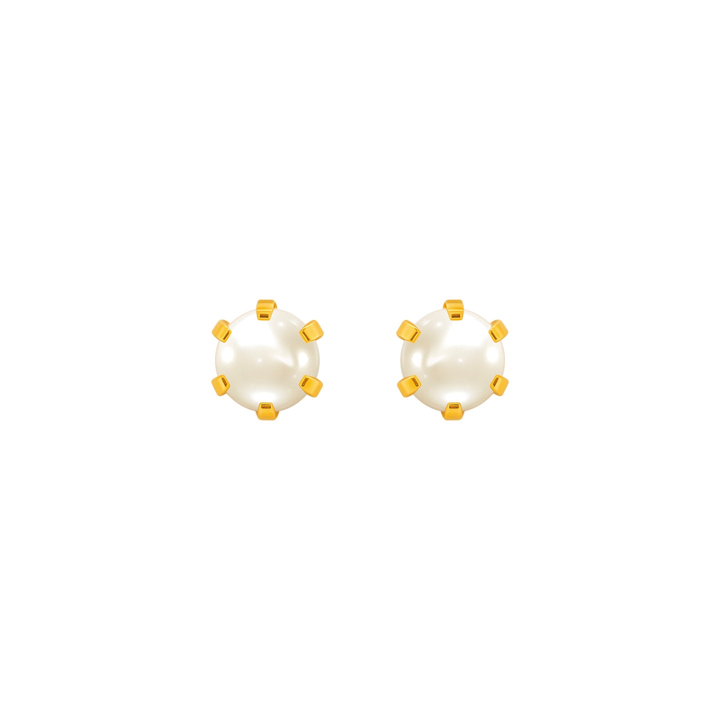 22k Yellow Gold Pearl Stud Earrings measuring 4.19mm length x 4.19mm width. Total gold weight is approximately 0.842g.