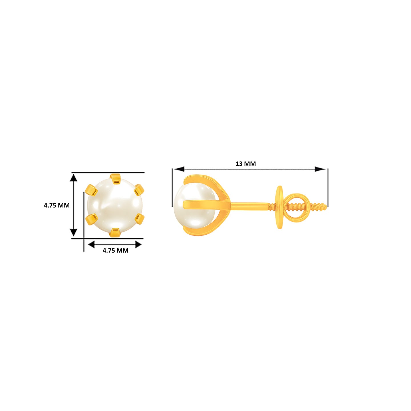22k Yellow Gold Pearl Stud Earrings measuring 4.74mm length x 4.74mm width. Total gold weight is approximately 0.909g.