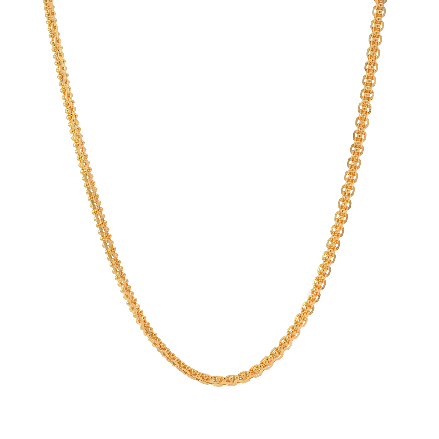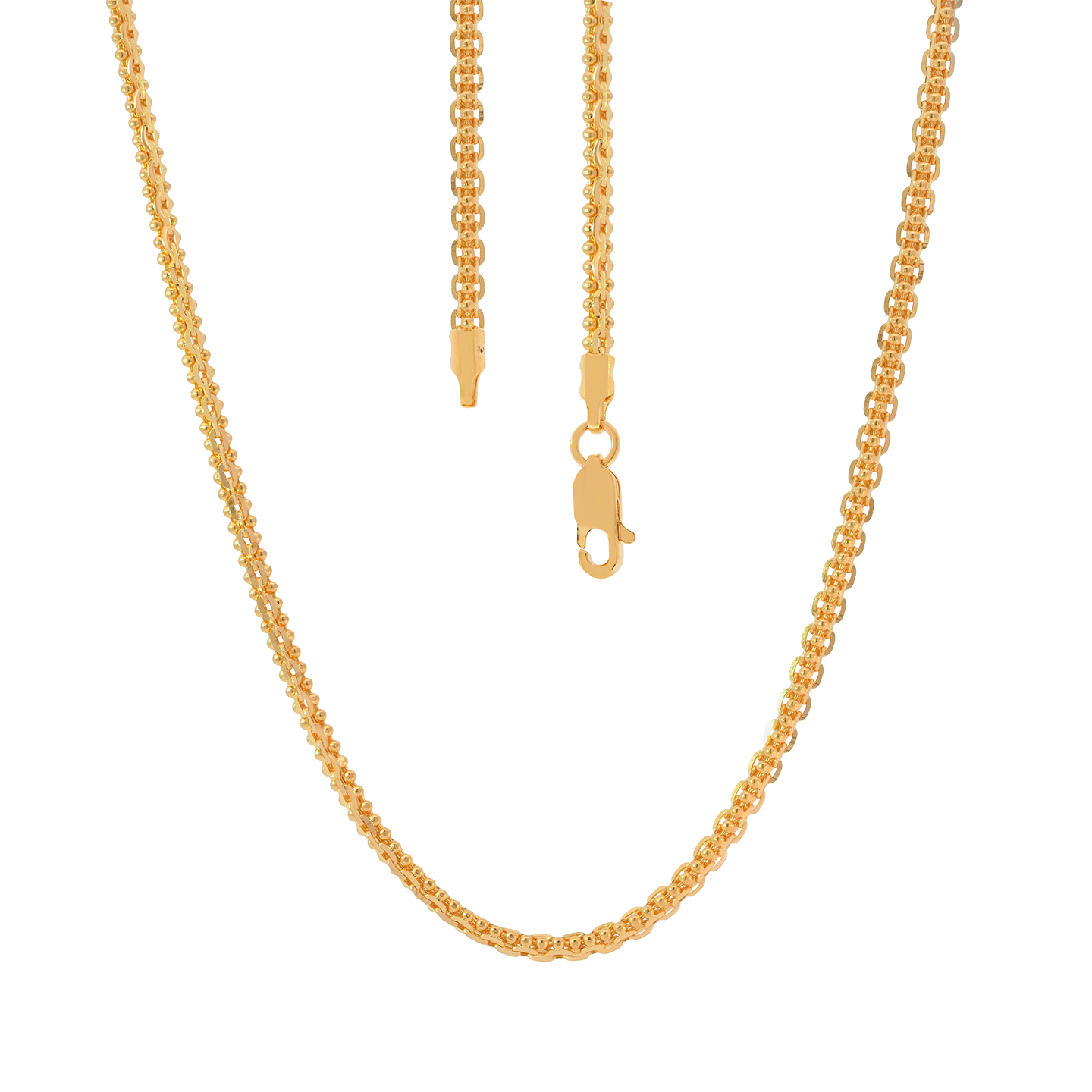 22k Yellow Gold Round Bismark Chain measuring 2mm width x 18 inch length. Total gold weight is approximately 11g.