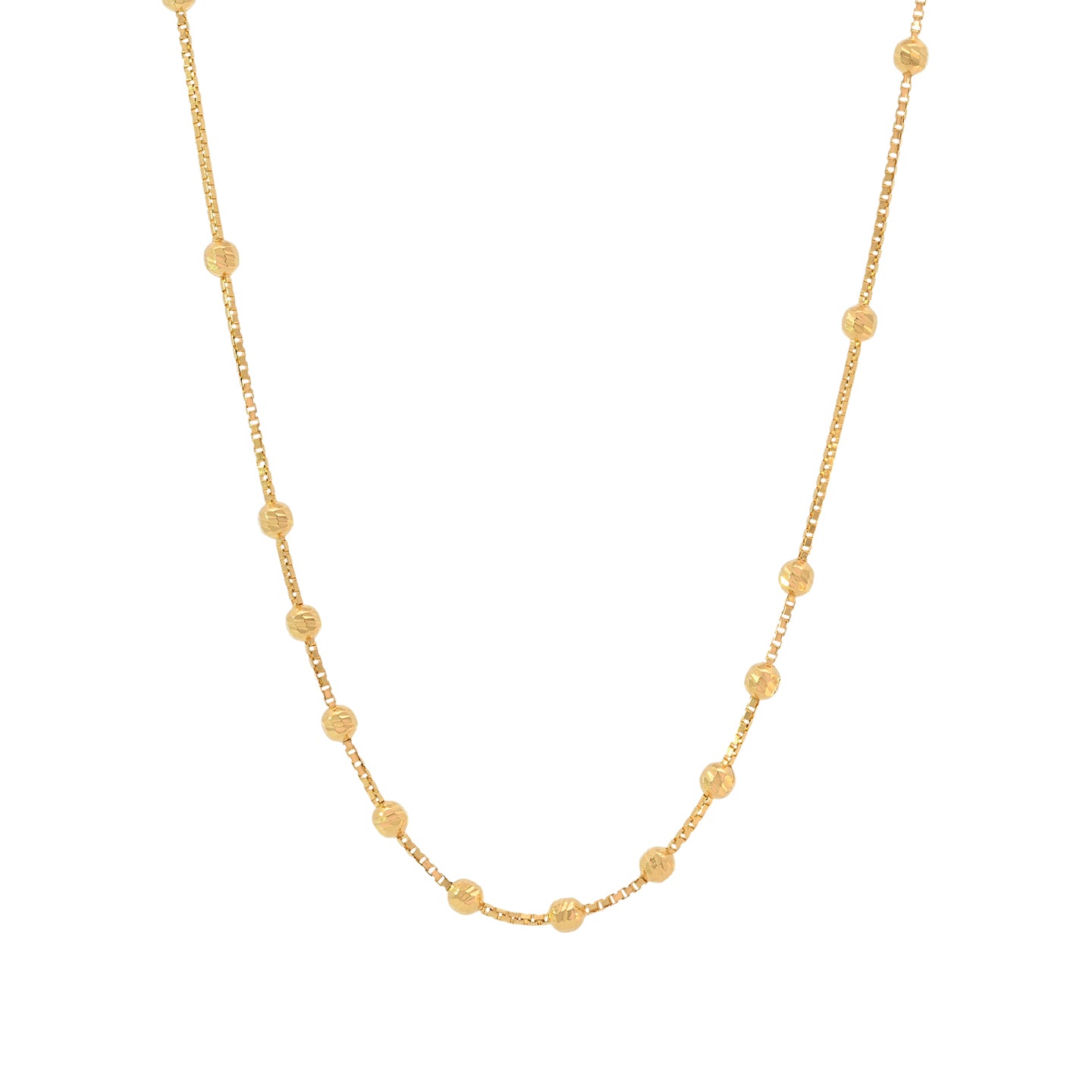22K Yellow Gold Round Small Ball Bead measuring 1.5mm width x 18 inch length. Total gold weight is approximately 6.82g.