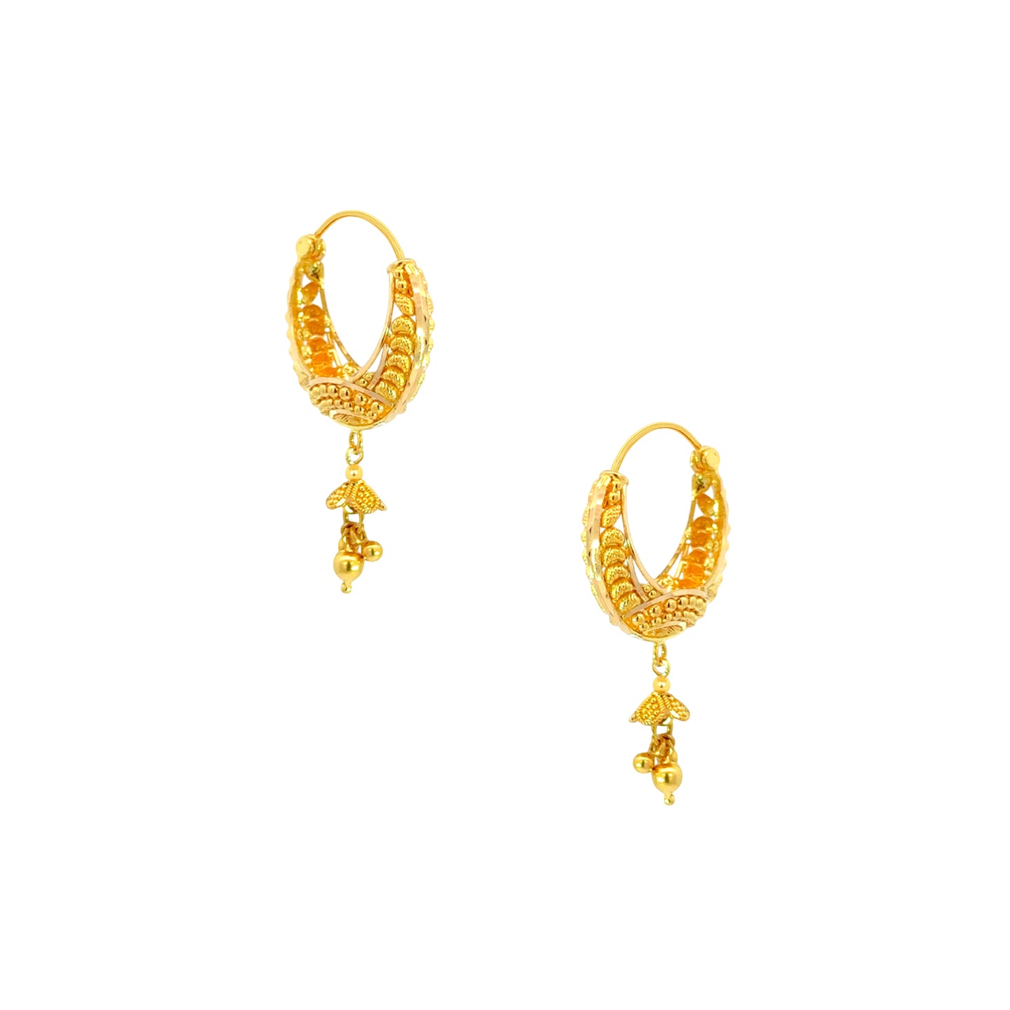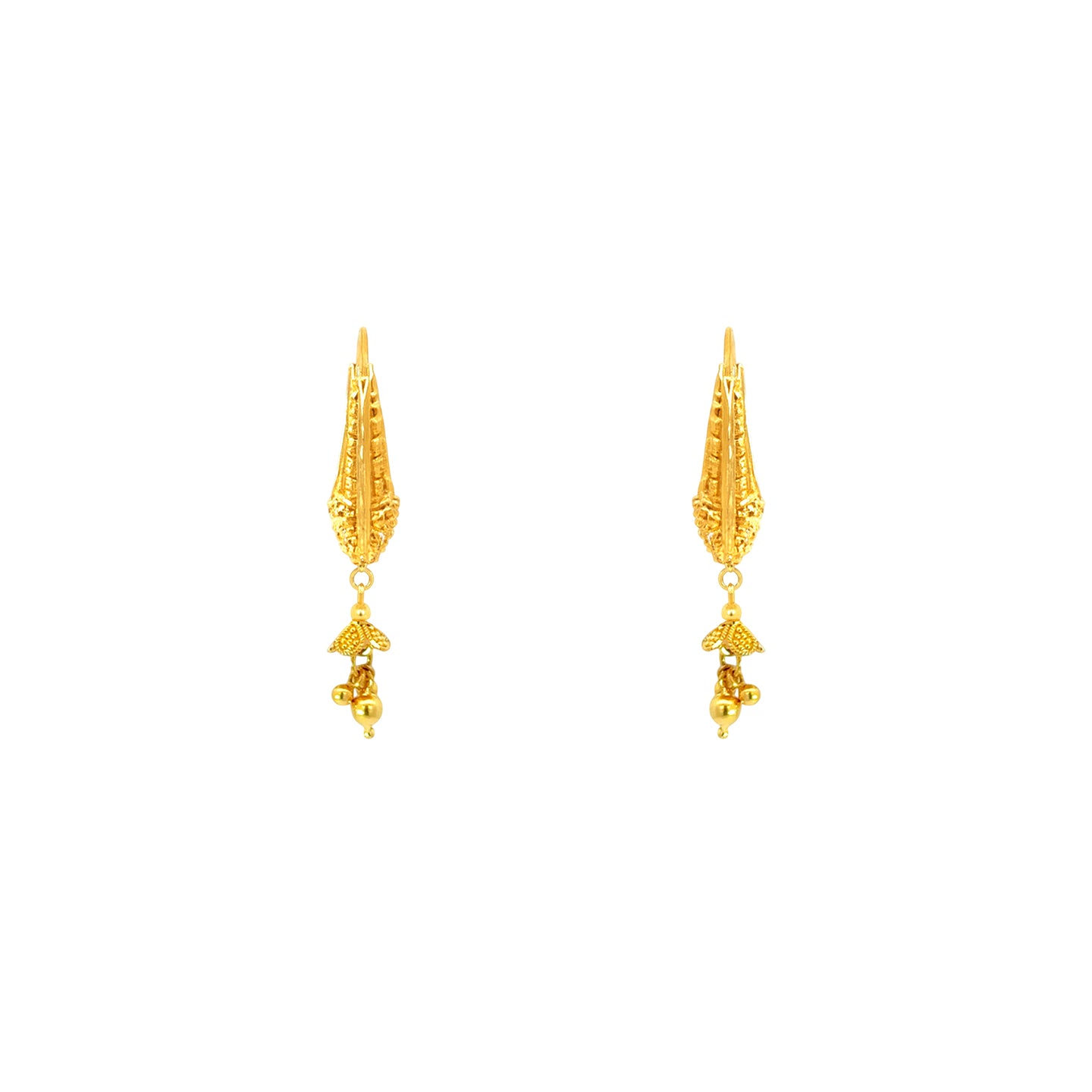 22k Yellow Gold Small Fancy Intricate Earrings measuring 15mm width x 35mm length. Total gold weight is approximately 6.61g.