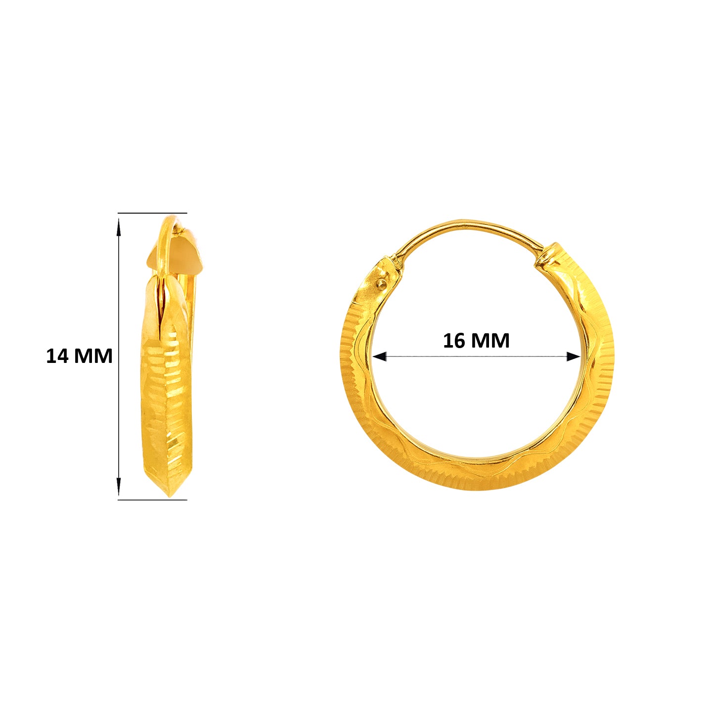 22k Yellow Gold Small Shiny Wavy Earrings measuring 14mm width x 16mm length. Total gold weight is approximately 2.73g.