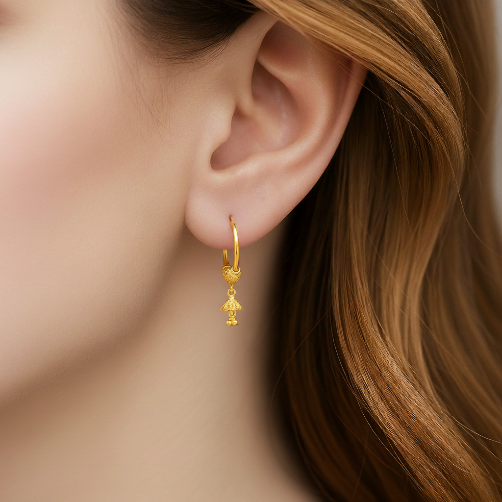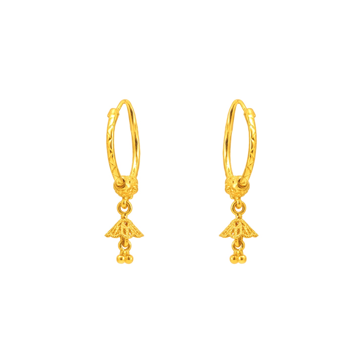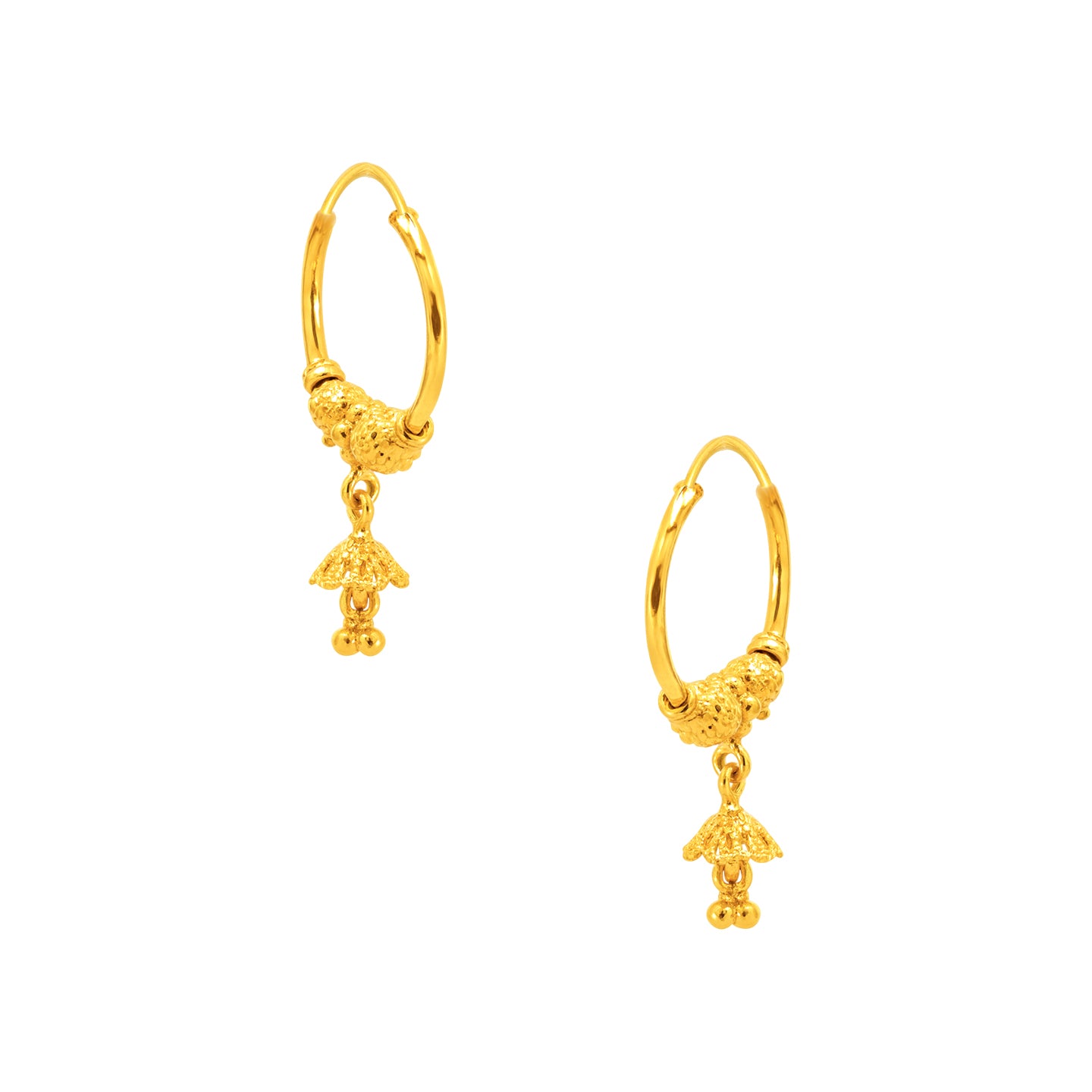 22k Yellow Gold Small Vibrant Beaded Earrings measuring 14mm width x 27mm length. Total gold weight is approximately 3.34g.