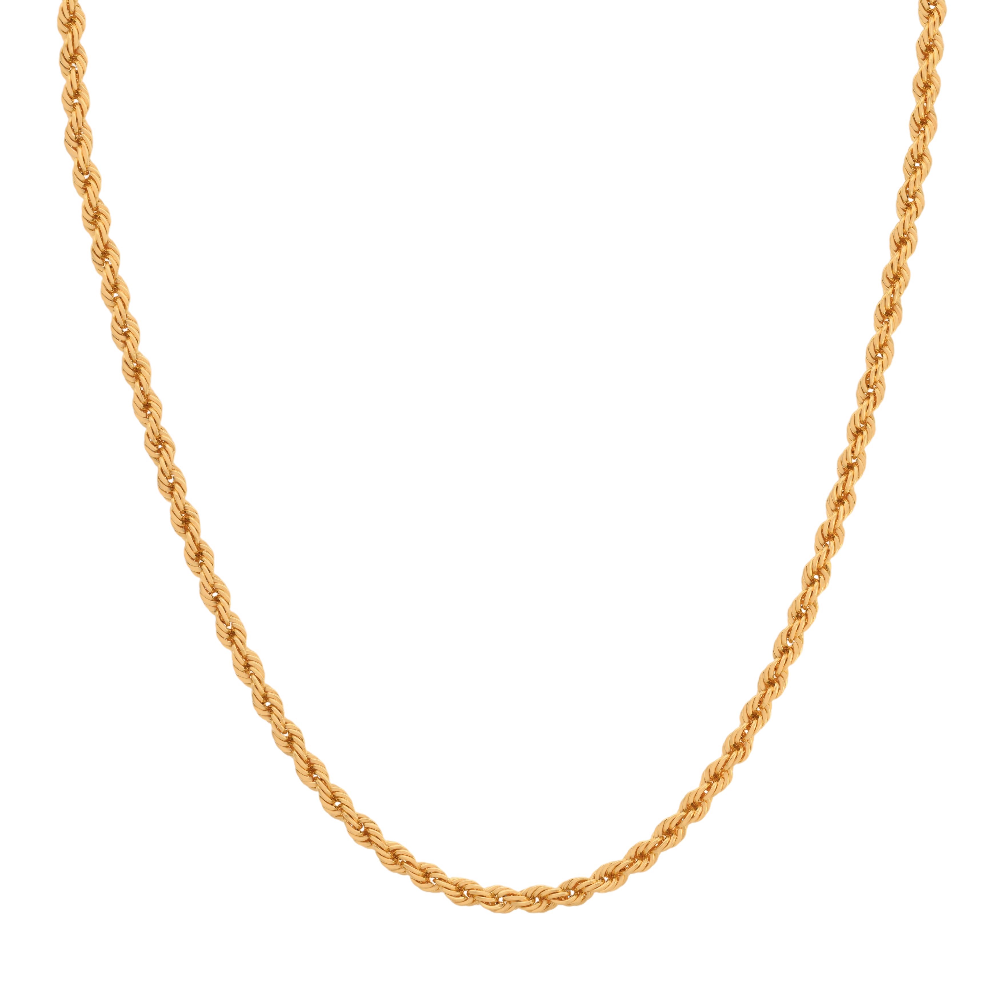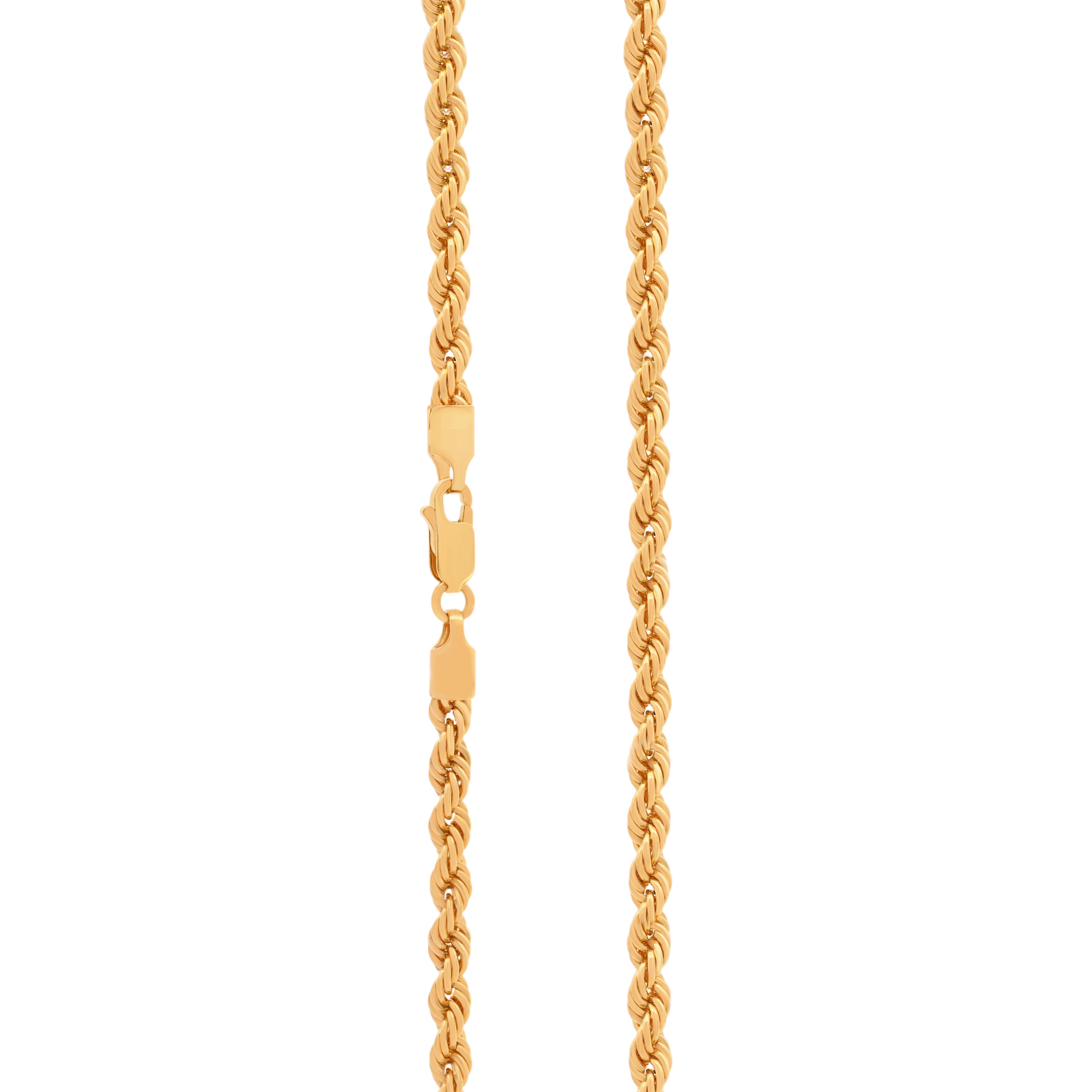 22K Yellow Gold Solid Medium Rope Chain measuring 1 mm thick, 18 in length and weighing approximately 12.56 grams.
