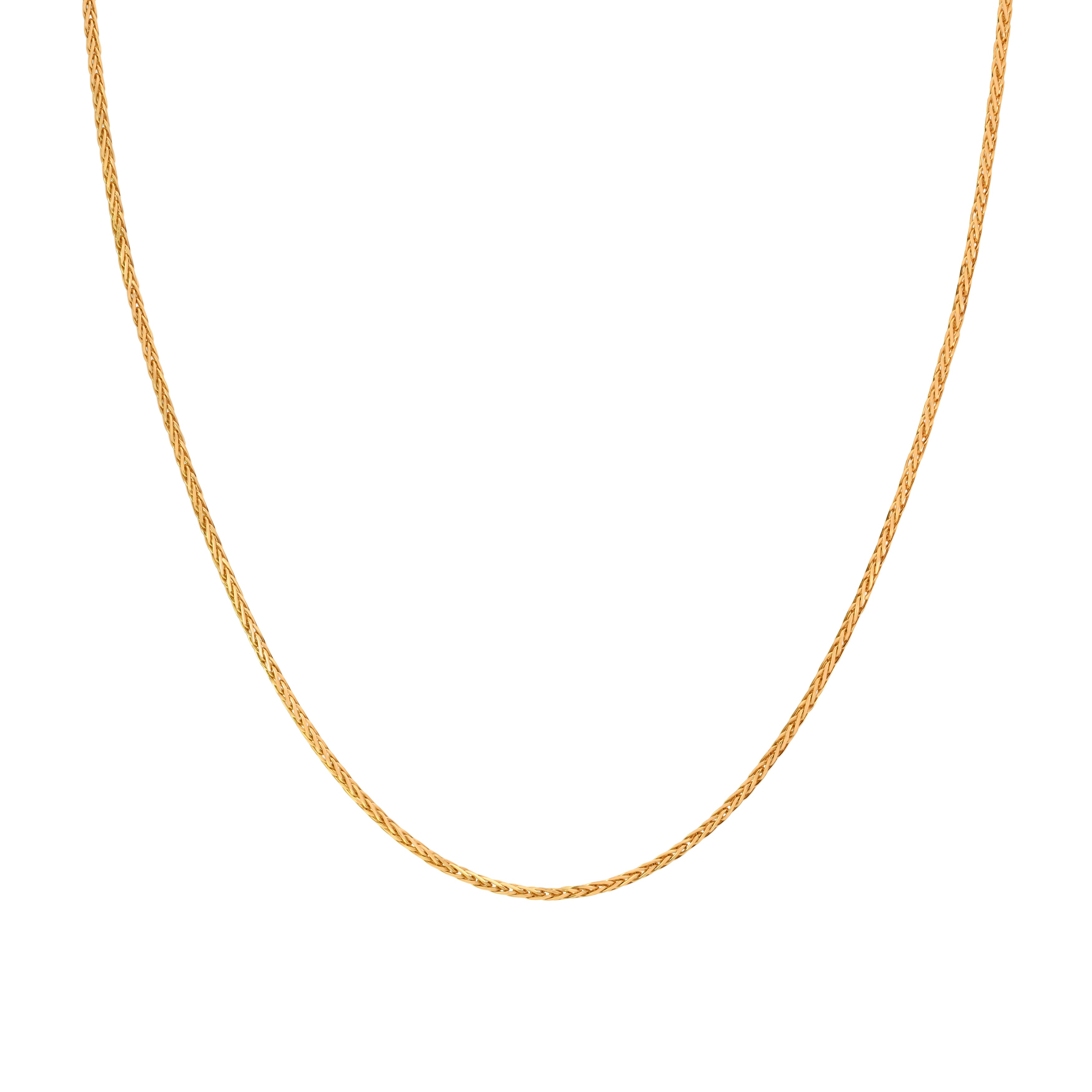 22K Yellow Gold Solid small Wheat Spiga measuring 1mm width x 22 inch length. Total gold weight is approximately 5.76g.