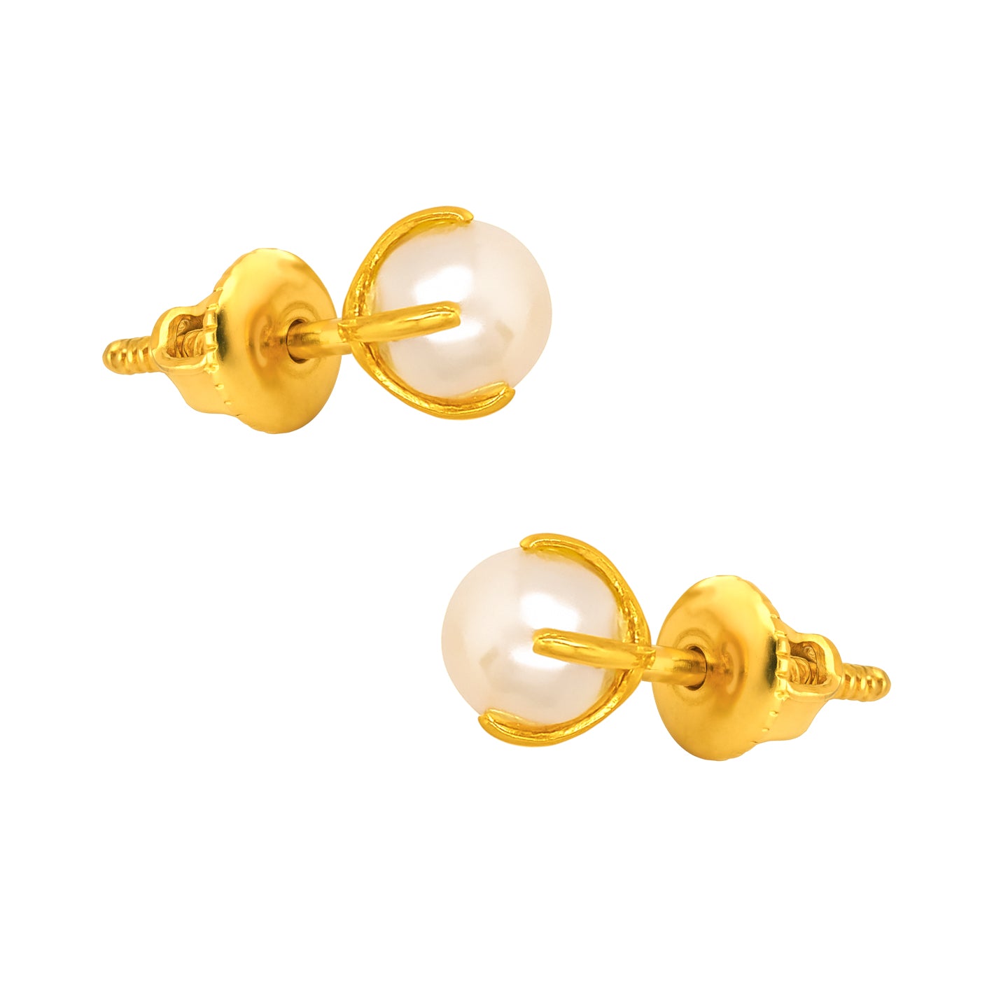 22k Yellow Gold Stud Pearl Earrings in size 5mm length x 5mm width. Total gold weight is approximately 0.98g.