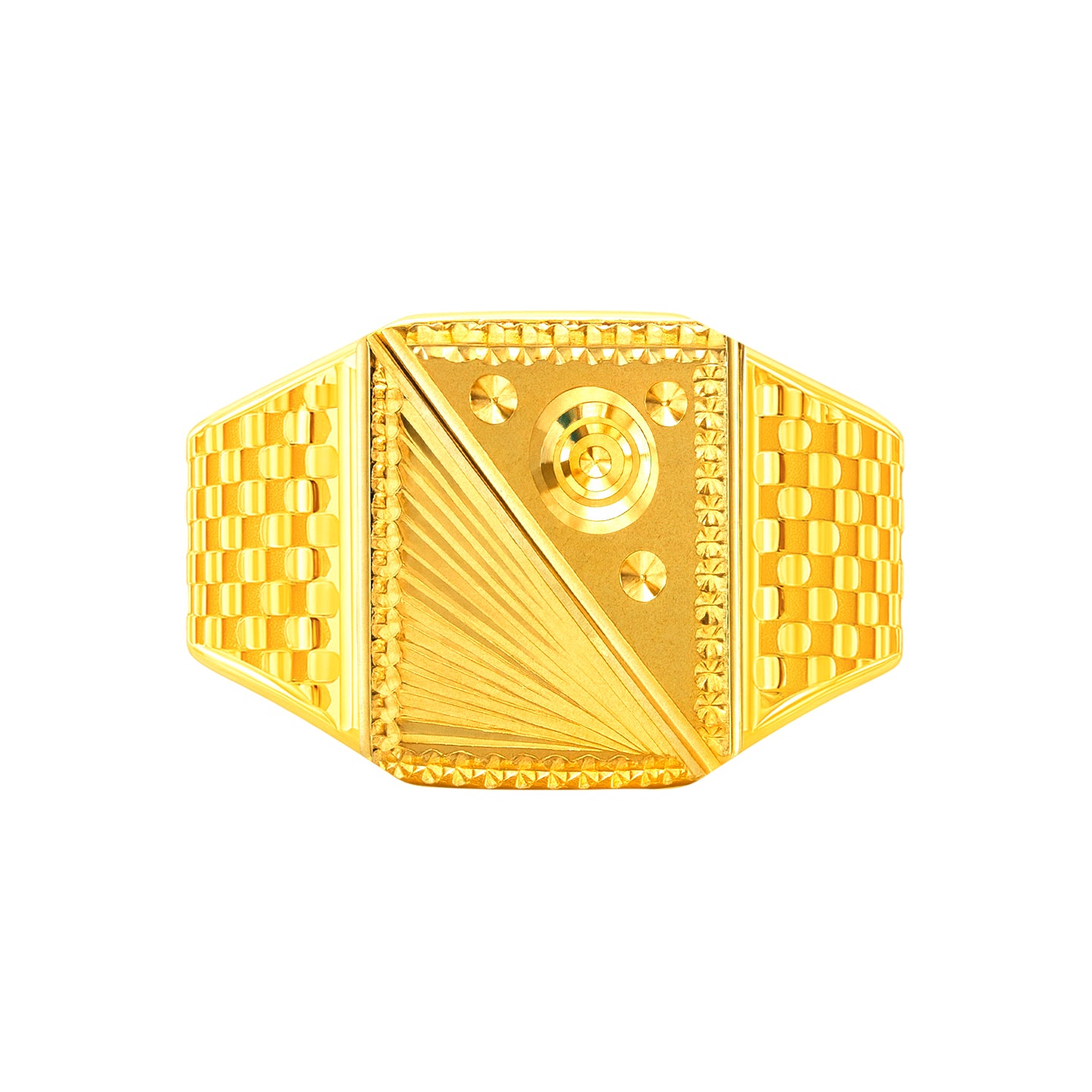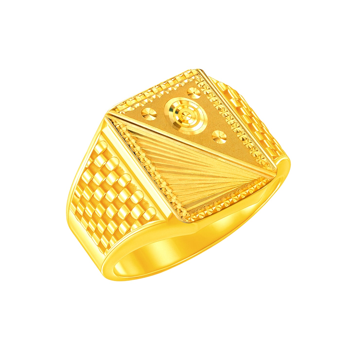 22k gold ring for men. Design measures 15mm in height and band is 6mm thick. The ring is size 10.