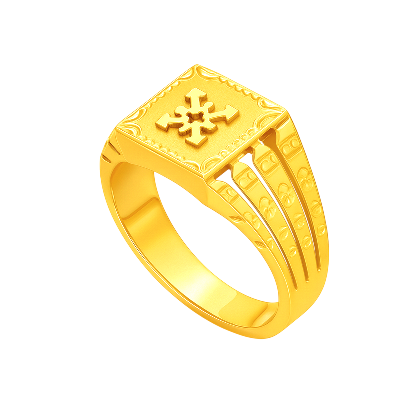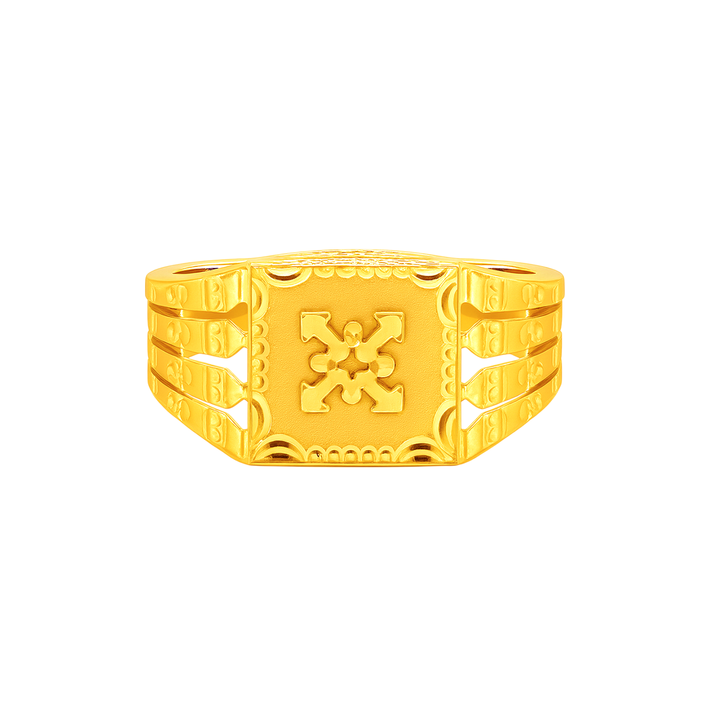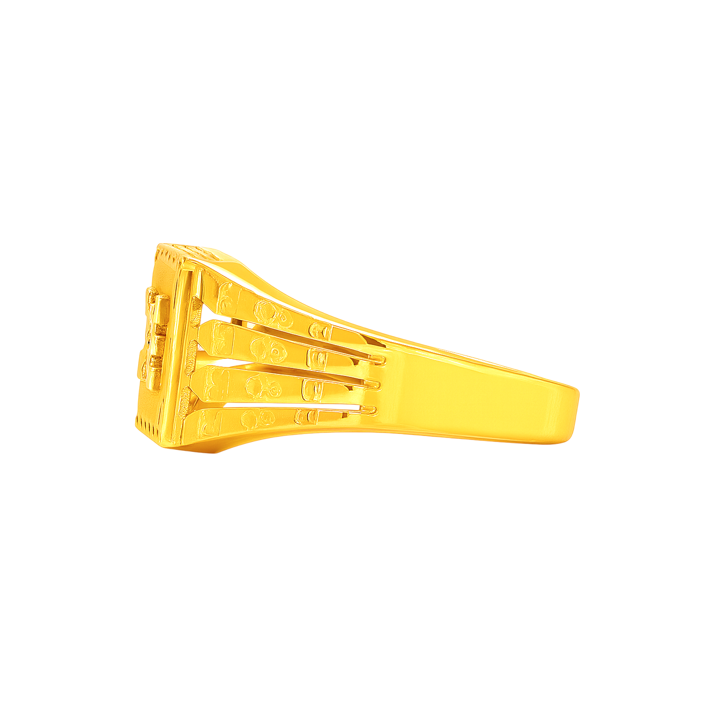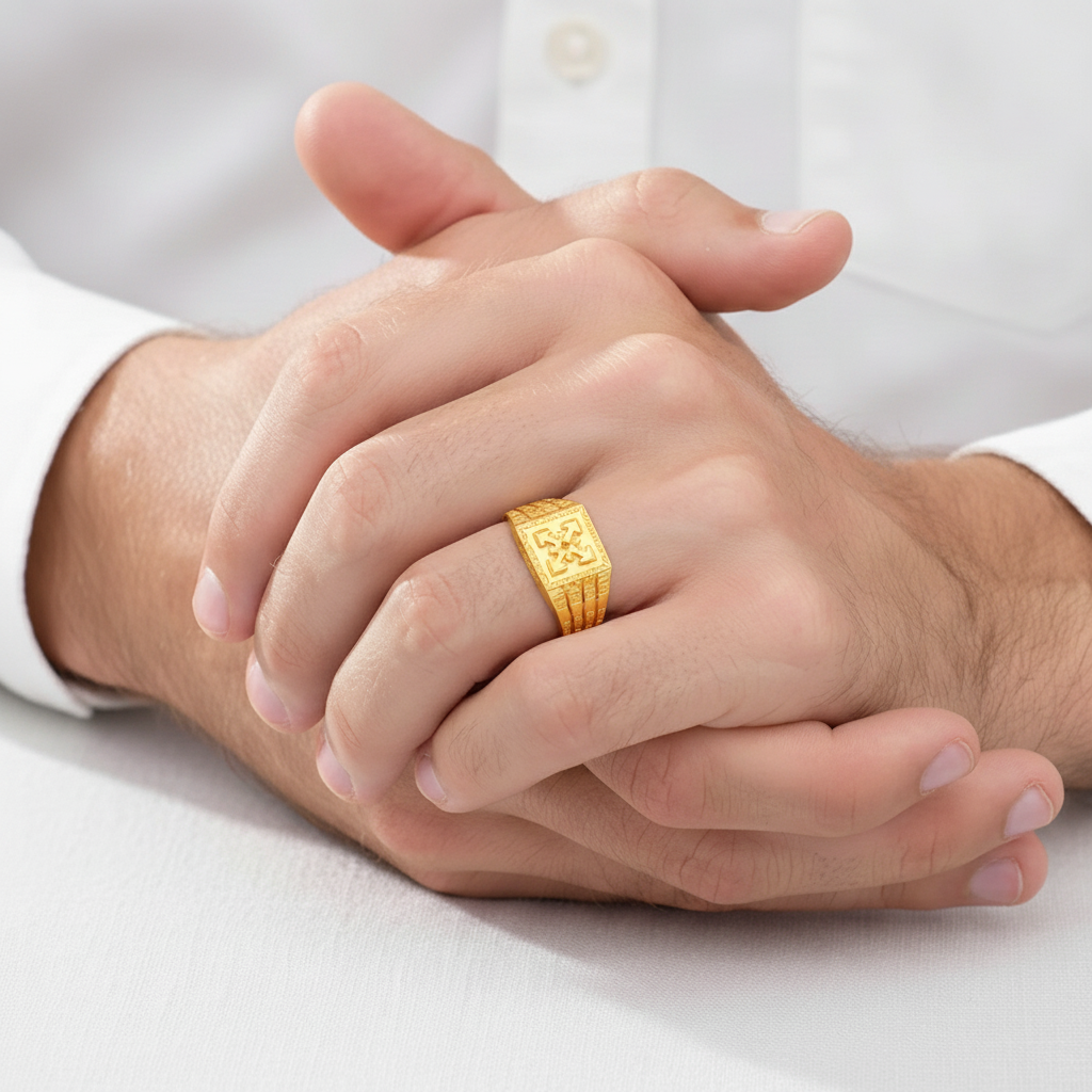 22k gold ring for men. Design measures 13mm in height and band is 4mm thick. The ring is size 11.5.