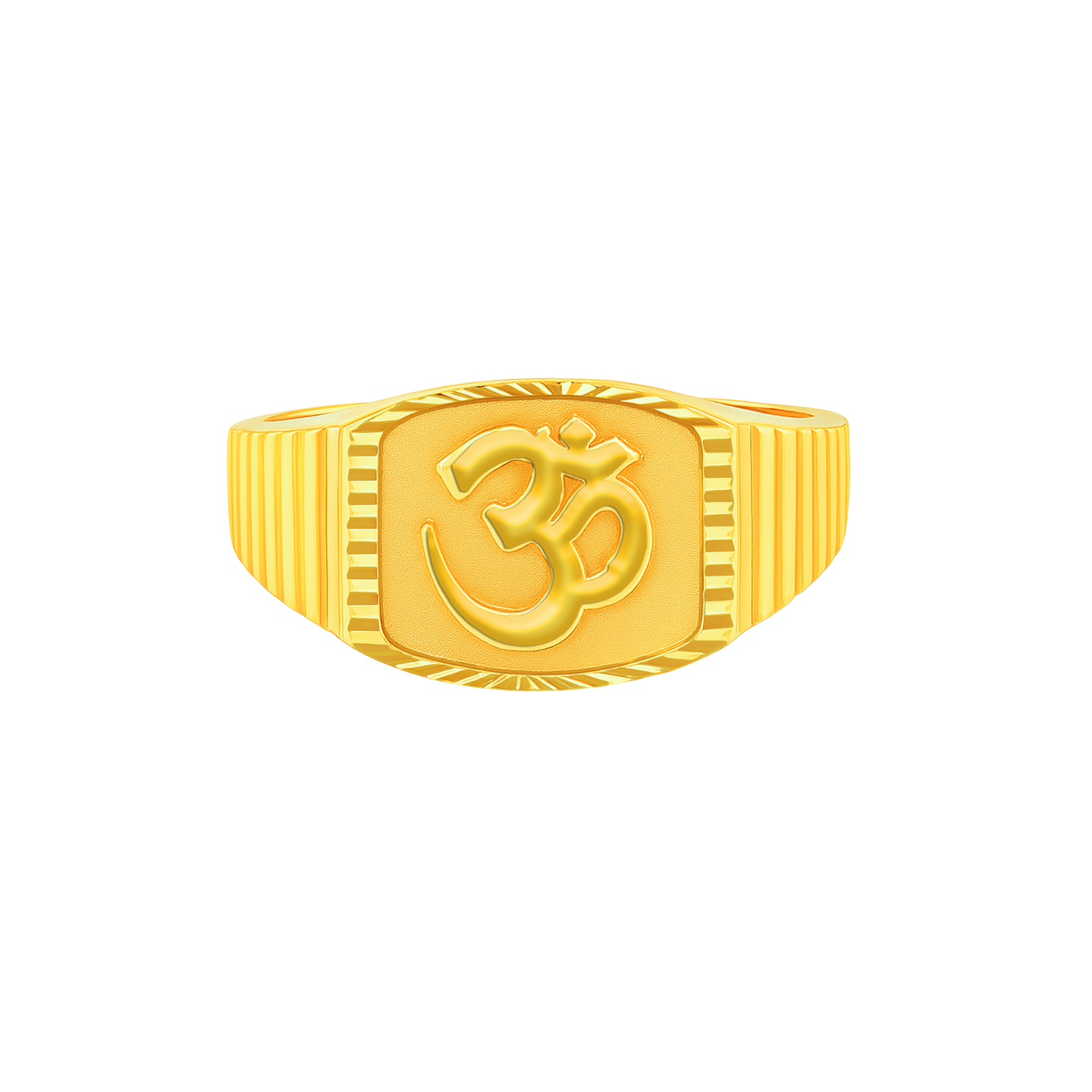 22k gold ring for men with Om design. Ring measures 3mm to 11mm in thickness. Ring size is 10.