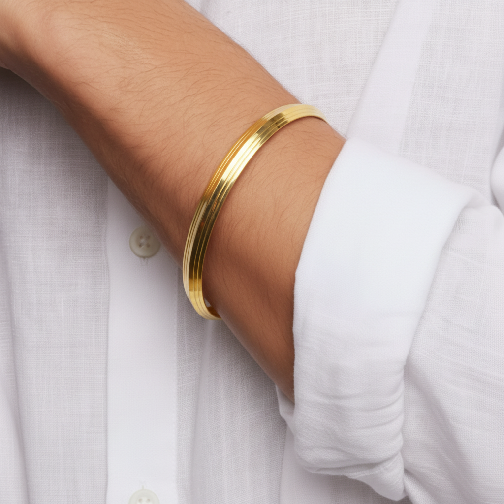 22k gold men's stylish kada in size 2-14. Kada measures 8mm thick.
